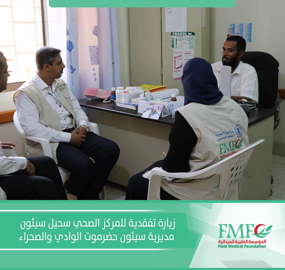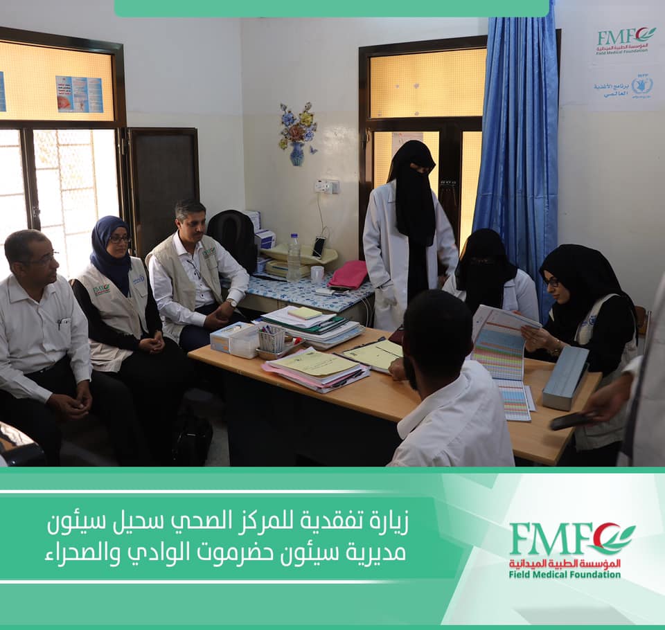 قام وفد المؤسسة الطبية الميدانية بزيارة تفقدية للإطلاع على سير العمل في المركز الصحي سحيل سيئون في مشروع التغذية التكميلي المنفذ من قبل المؤسسة الطبيه الميدانيه والمدعوم من برنامج الاغذيه العالمي
