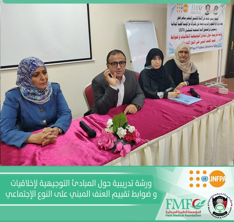 بتمويل من صندوق الأمم المتحدة للسكان و برعاية رئيس جامعة عدن الاستاذ الدكتور الخضر ناصر لصور نظم مركز المرأة للبحوث و التدريب جامعة عدن بالشراكة مع المؤسسة الطبية الميدانية الورشة التدريبية حول المبادئ التوجيهية لإخلاقيات و ضوابط تقييم العنف المبني على النوع الإجماعي خلال الفترة من 19- 20مايو 2019 بقاعة فندق كورال بمحافظة عدن بحضور الدكتورة ابتهاج الكمال وزيرة الشوؤن الإجتماعية و العمل و الدكتورة مها عبادي المدير التنفيذي للمؤسسة الطبية الميدانية والدكتورة هدى باسليم نائب عميد الدراسات العليا و عضو مركز المرأة للبحوث و التدريب .