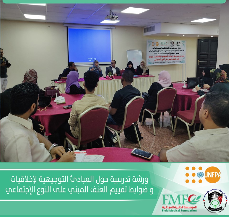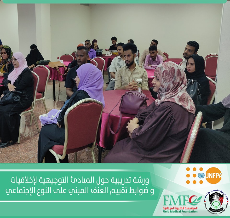 بتمويل من صندوق الأمم المتحدة للسكان و برعاية رئيس جامعة عدن الاستاذ الدكتور الخضر ناصر لصور نظم مركز المرأة للبحوث و التدريب جامعة عدن بالشراكة مع المؤسسة الطبية الميدانية الورشة التدريبية حول المبادئ التوجيهية لإخلاقيات و ضوابط تقييم العنف المبني على النوع الإجماعي خلال الفترة من 19- 20مايو 2019 بقاعة فندق كورال بمحافظة عدن بحضور الدكتورة ابتهاج الكمال وزيرة الشوؤن الإجتماعية و العمل و الدكتورة مها عبادي المدير التنفيذي للمؤسسة الطبية الميدانية والدكتورة هدى باسليم نائب عميد الدراسات العليا و عضو مركز المرأة للبحوث و التدريب .