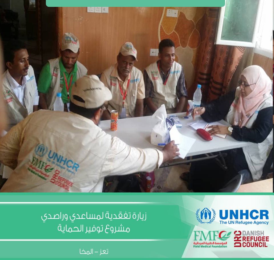 زيارة تفقدية لمساعدي و راصدي مشروع توفير خدمات الحماية للنازحين والعائدين الممول من المفوضية السامية للأمم المتحدة لشؤون اللاجئيين #UNHCR و الذي ينفذه المجلس الدنمركي للاجئيين #DRC بالشراكة مع المؤسسة الطبية الميدانية #FMF في الساحل الغربي وخلال الزيارة تم مناقشة مخرجات المشروع في الفترة السابقة و اعطاء تصور كامل عن الانشطة القادمة في الساحل الغربي كما تم تقيم اداء الراصدين في المشروع من حيث الانجاز اليومي والشهري لهم .