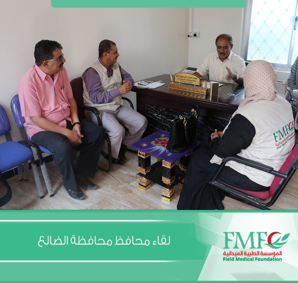 و خلال اللقاء استعراض وفد المؤسسة المشاريع و الانشطة التي تنفذها في محافظة الضالع كما تم استعراض التدخلات المستقبلية التي ستنفذها المؤسسة الطبية الميدانية في المحافظة منها مشروع توفير خدمات الحماية للنازحين والعائدين.