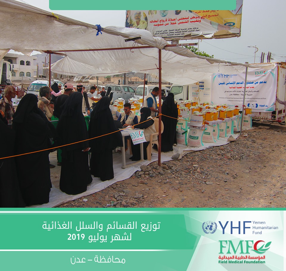 تدشين توزيع الجولة السادسة من القسائم والسلال الغذائية المدعومة من صندوق الدعم الإنساني لليمن YHF# و المنفذه من قبل المؤسسة الطبية الميدانية FMF# للاسر الأشد احتياجاً في مديرية البريقة بمحافظة عدن.