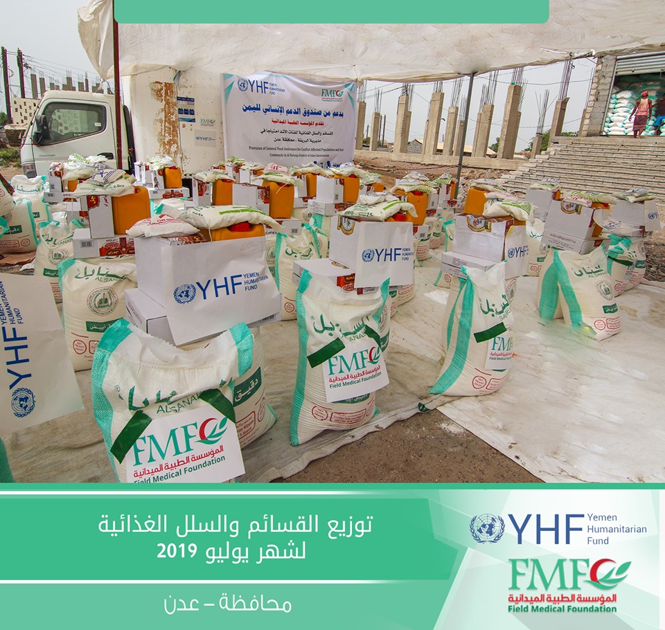 تدشين توزيع الجولة السادسة من القسائم والسلال الغذائية المدعومة من صندوق الدعم الإنساني لليمن YHF# و المنفذه من قبل المؤسسة الطبية الميدانية FMF# للاسر الأشد احتياجاً في مديرية البريقة بمحافظة عدن.