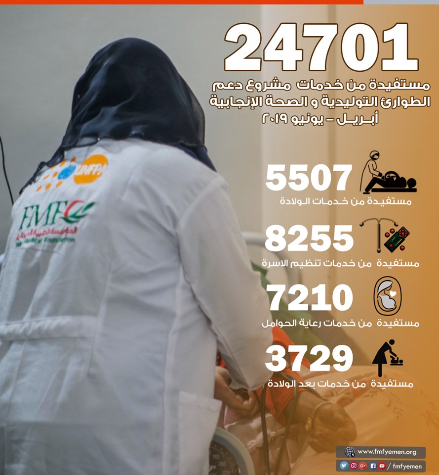 بسبب النزاع وانهيار الخدمات الصحية في البلاد تعاني النساء والفتيات اليمنيات من أعلى معدلات وفيات الأمهات في الشرق الأوسط ، توفير الرعاية التوليدية الطارئة المنقذة للأرواح ومنع المضاعفات قبل وبعد الولادة وخلالها، هو أحد أهم أهداف مشروع #دعم_الطوارئ_التوليدية و#الصحة_الإنجابية و الذي تنفذة #المؤسسة_الطبية_الميدانية #FMF بتمويل من صندوق الأمم المتحدة للسكان Unfpa Yemen في اربع محافظات هي #عدن و #أبين و #شبوة و #الضالع و ذلك عبر دعم الكوادر الصحية و إمداد المراكز بالأدوية و المستلزمات الطبية و أدوات النظافة .