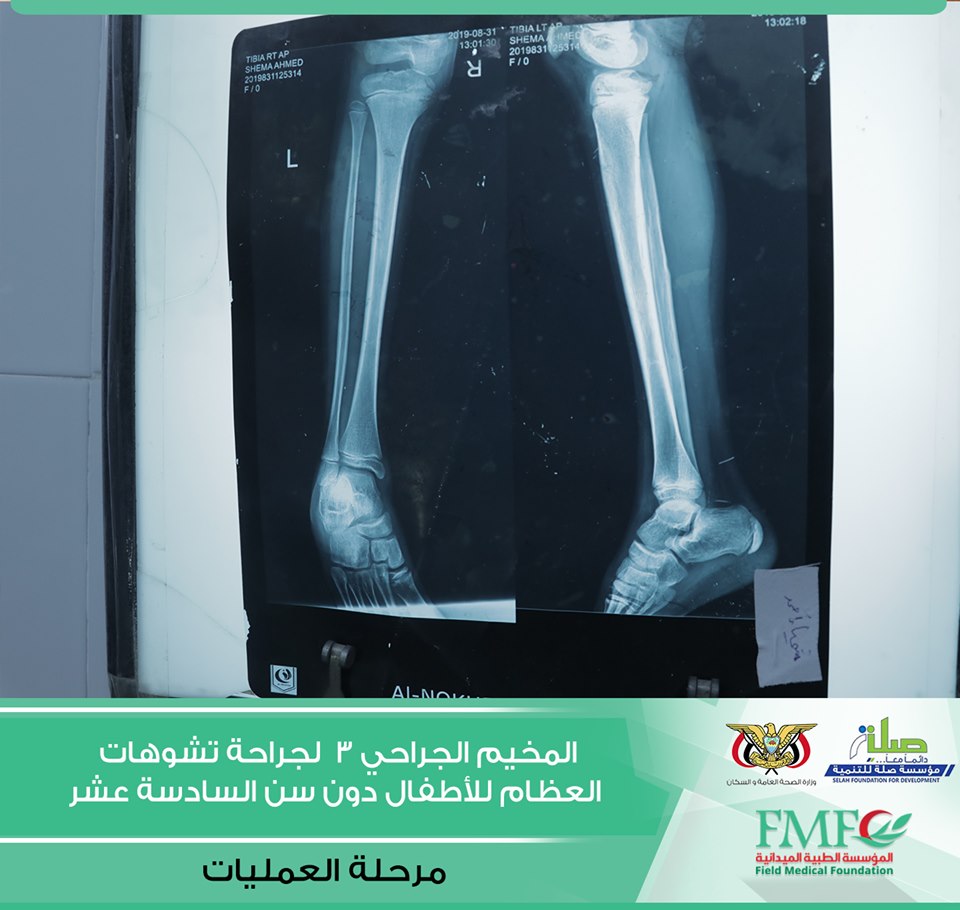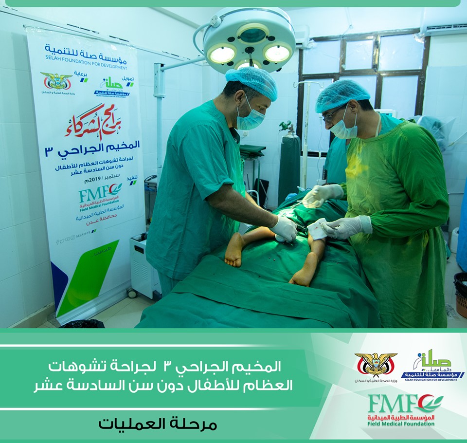 بتمويل من مؤسسة صلة للتنمية Selah Foundation for Development و برعاية وزارة الصحة العامة و السكان دشنت المؤسسة الطبية الميدانية المرحلة الثانية “مرحلة العمليات ” من المخيم الجراحي الثالث لجراحة تشوهات العظام للأطفال دون سن السادسة عشر .