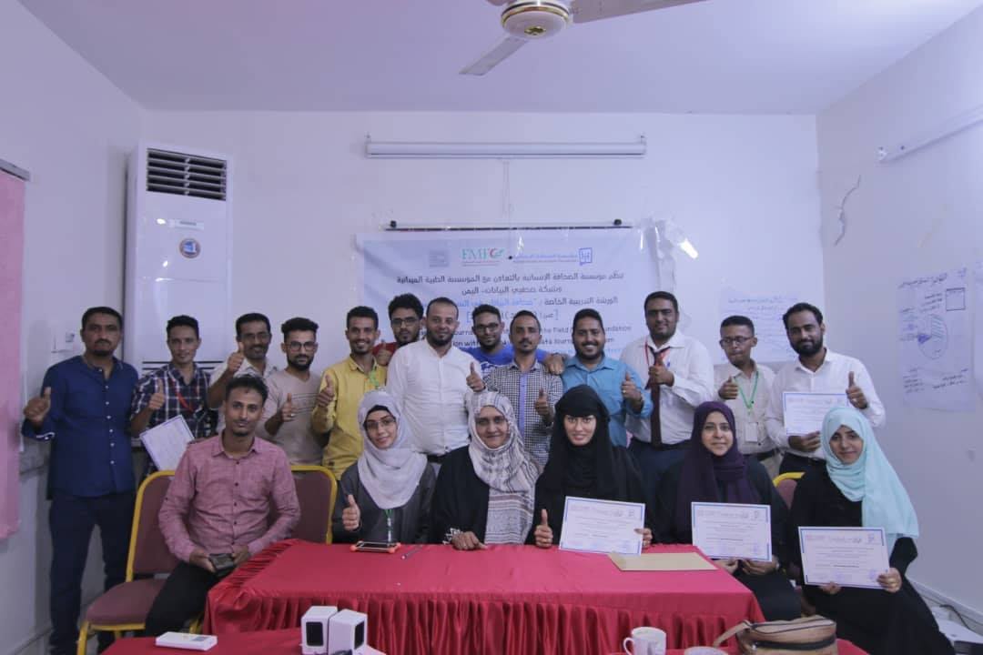 الورشة التدريبية النوعية تعد الاولى في اليمن و نظمتها مؤسسة الصحافة الإنسانية بالتعاون مع المؤسسة الطبية الميدانية FMF وشبكة صحفيي البيانات في اليمن .