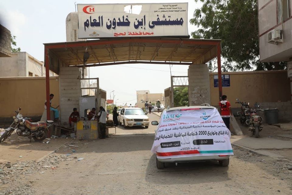 دشن فريق شباب لحج بدعم من المؤسسة الطبية الميدانية FMF بتدشين توزيع عدد 2000 كمامة قماشية لغرض الحماية الوقائية وذلك في مستشفى ابن خلدون في حوطة لحج .
