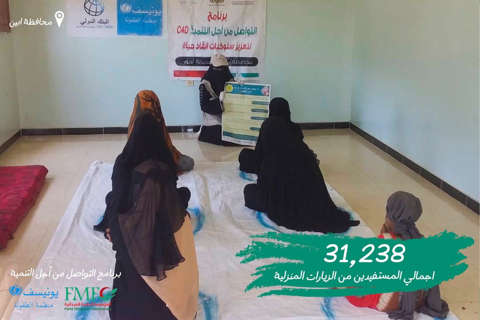 الوعي هو أحد أهم جوانب مكافحة الوباء. لكن الكثير من الناس في اليمن لا يستطيعون الوصول إلى المعلومات الحيوية حول COVID-19 ، ولهذا السبب قام برنامج C4D الذي تموله اليونيسف من نشر الوعي إلى 31،238 مستفيدًا من خلال جلسات التوعية بالزيارات المنزلية مع اخذ إجراءات السلامة الصحية الوقائية في أبين ، الضالع وشبوة.