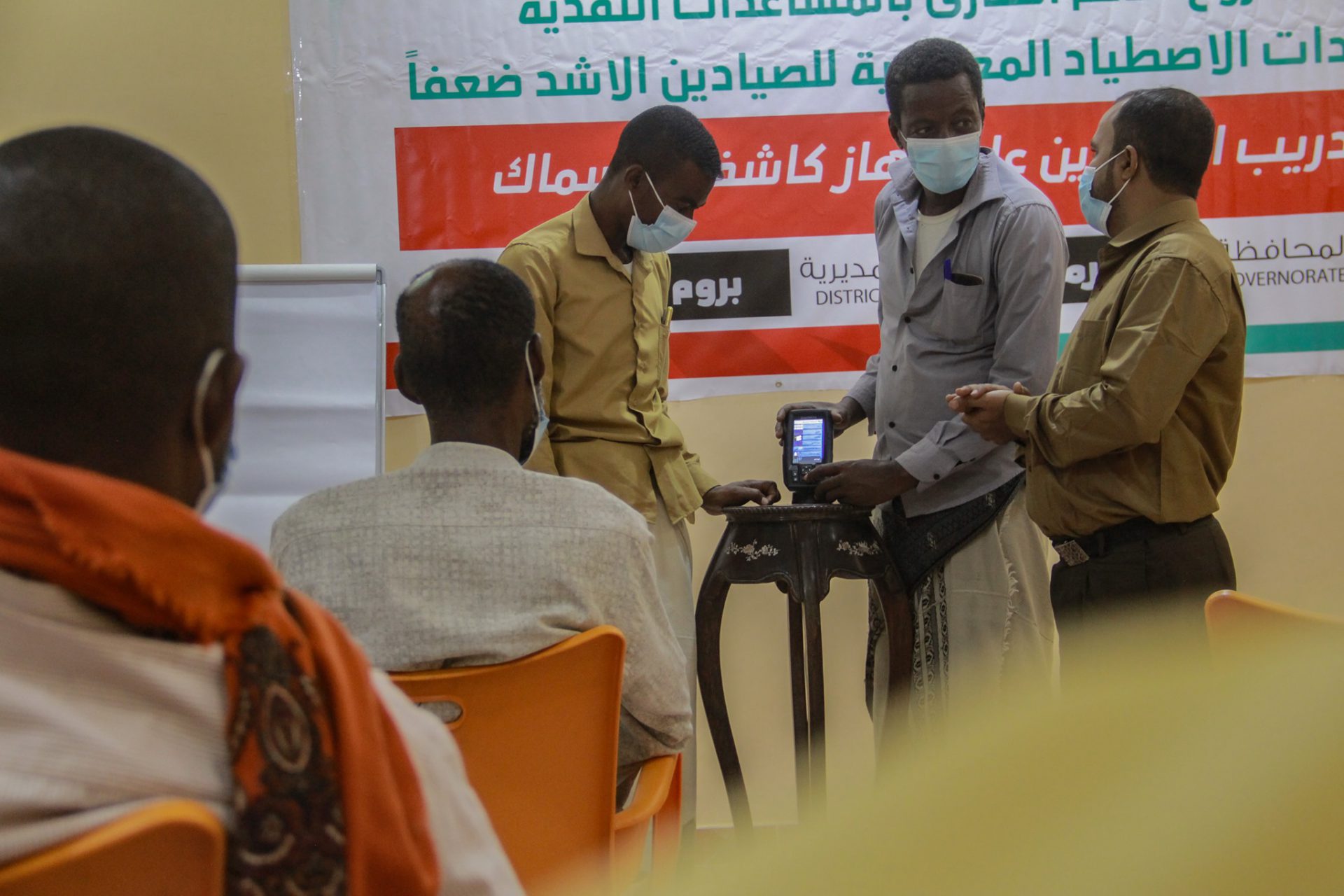 تدشين الورشة التدريبية على أجهزة كاشف الأسماك ضمن مشروع الدعم الطارى بالمساعدات النقدية ومعدات الإصطياد المعيشية للصيادين الأشد ضعفا – محافظة حضرموت