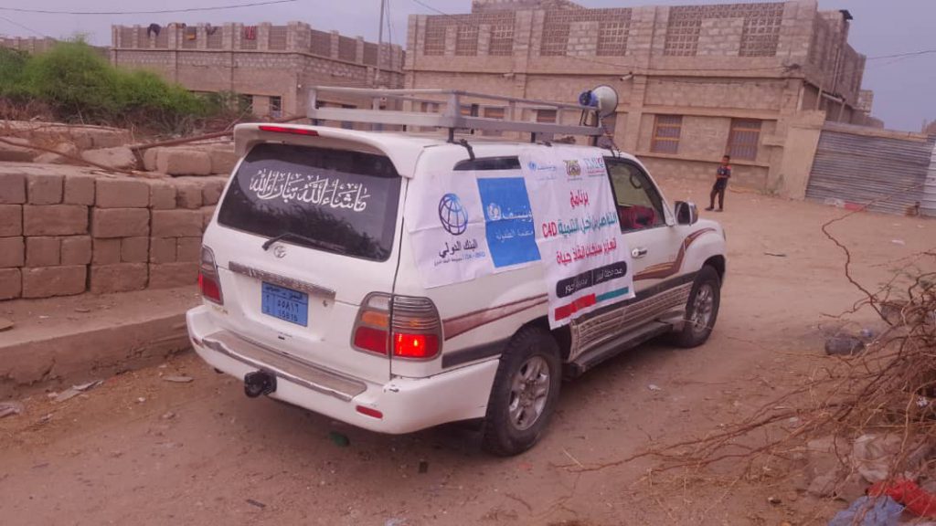 تثقيف المجتمع حول فيروس كورونا بواسطة مكبرات الصوت و الملصقات التوعوية واللوحات الاعلانية