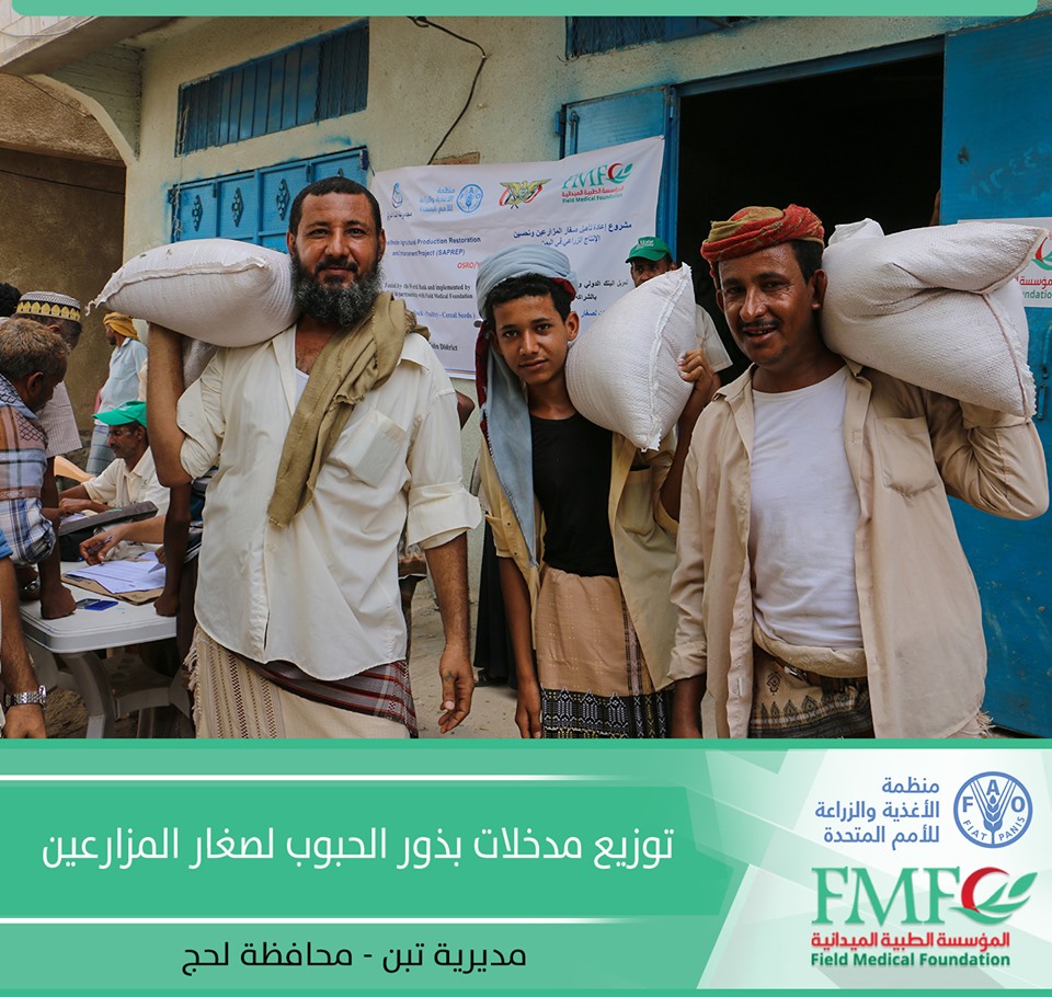 توزيع مدخلات بذور الحبوب لصغار المزارعين – محافظة لحج