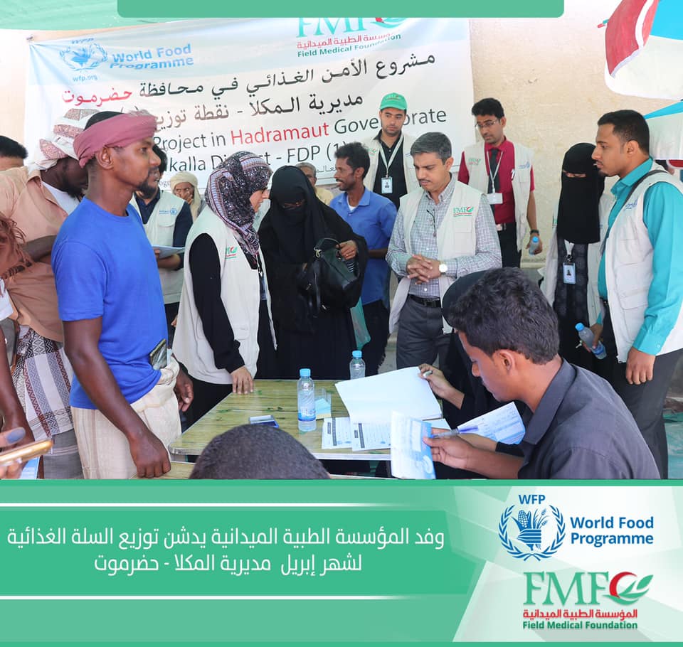 وفد المؤسسة الطبية الميدانية يدشن توزيع السلة الغذائية لشهر أبريل – مديرية المكلا , حضرموت