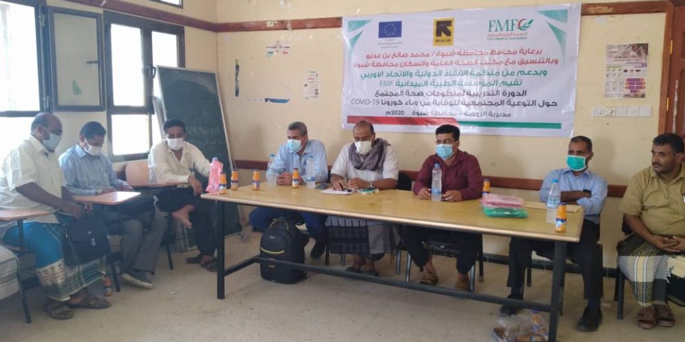 تنظيم دورة تدريبية لمتطوعات صحة المجتمع حول التوعية المجتمعية للوقاية من وباء كورونا COVlD-19 بمديرية الروضة – محافظة شبوة