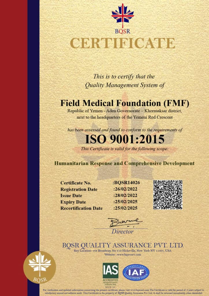 Since its inception, the FMF has sought to develop its administrative and technical systems, culminating for the first time in 2017 by obtaining the ISO9001:2015 Quality Management System Certificate. And various levels, especially in the governance system, which is the safety valve for us, which confirms our total commitment to adhere to the highest professional and administrative standards, and we are sure that our investment in developing our systems is one of the elements of our success, is a humanitarian and development institution that seeks leadership at the local and regional levels.