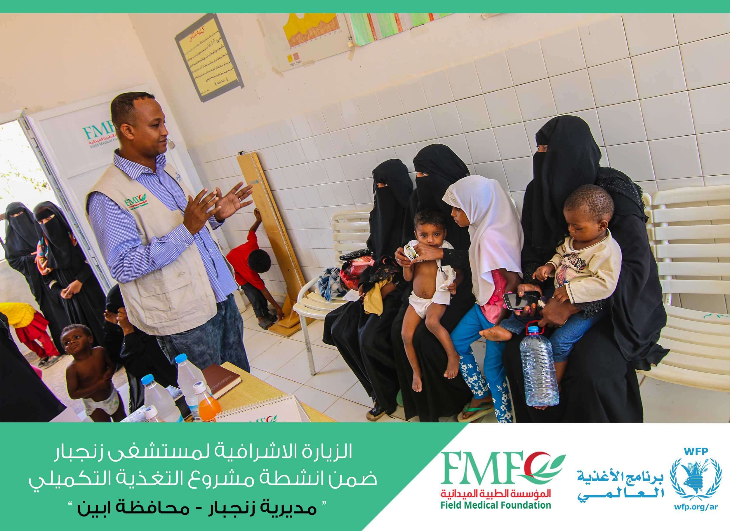 the project team was represented by Dr. Erzak Sulaiman, the Project’s Monitoring and Evaluation Officer, Mr. Abdulrahman Faree, Communication for Development Officer and Dr. Hisham Fadhel, Project Coordinator in Abyan Governorate, in a supervisory visit to Zanzibar Hospital. To monitor and supervise the work in the clinic and to ascertain the role of services provided by the clinic team and methods of taking anthropometric measurements and review records and reports, and to know the difficulties and obstacles that accompany the team of the clinic.